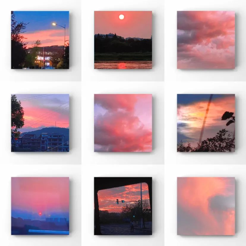 傍晚时分,夕阳如熔金般倾泻,将云朵染成橘红、紫罗兰与金黄。