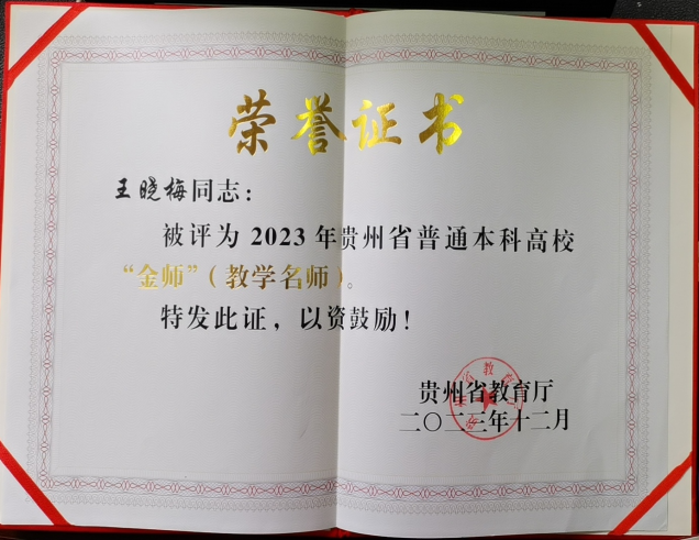 4.团队教师科研能力和科研产出显出提升,近年平均每年获批1项国家级科研项目,教师获评贵州省“金师”和贵州大学“国华”优秀教师;