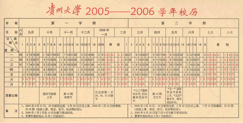 贵州大学2005-2006学年校历
