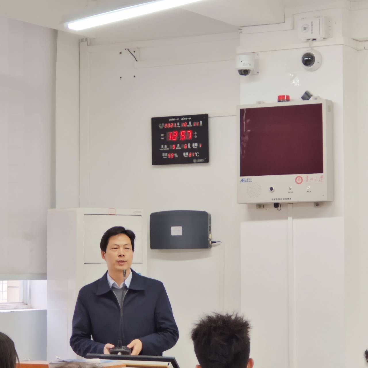 2021年10月11日贵州大学第三十五期入党积极分子培训班历史与民族文化学院、物理学院分党校暨历史与民族文化学院第十四期发展对象培训班开班典礼在博学楼210教室举行。历史与民族文化学院党委副书记(主持工作)徐练、党委副书记雷方俊、副院长黄诚、组织员张月参加了开班典礼。