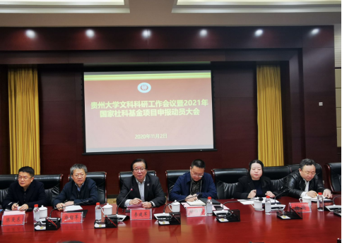 11月2日上午九点,贵州大学文科科研工作会议暨2021年国家社科基金申报动员大会在崇义楼报告厅顺利召开。贵州大学党委书记李建军教授、省委规划办副主任(主持工作)钟西辉出席会议,云南大学社会科学处处长杨绍军教授也应邀出席了此次会议。会议由贵州大学党委常委宣传部长杨楠同志主持。文科各学院院长、党委书记、分管科研的副院长及教师代表110多人参加了会议。