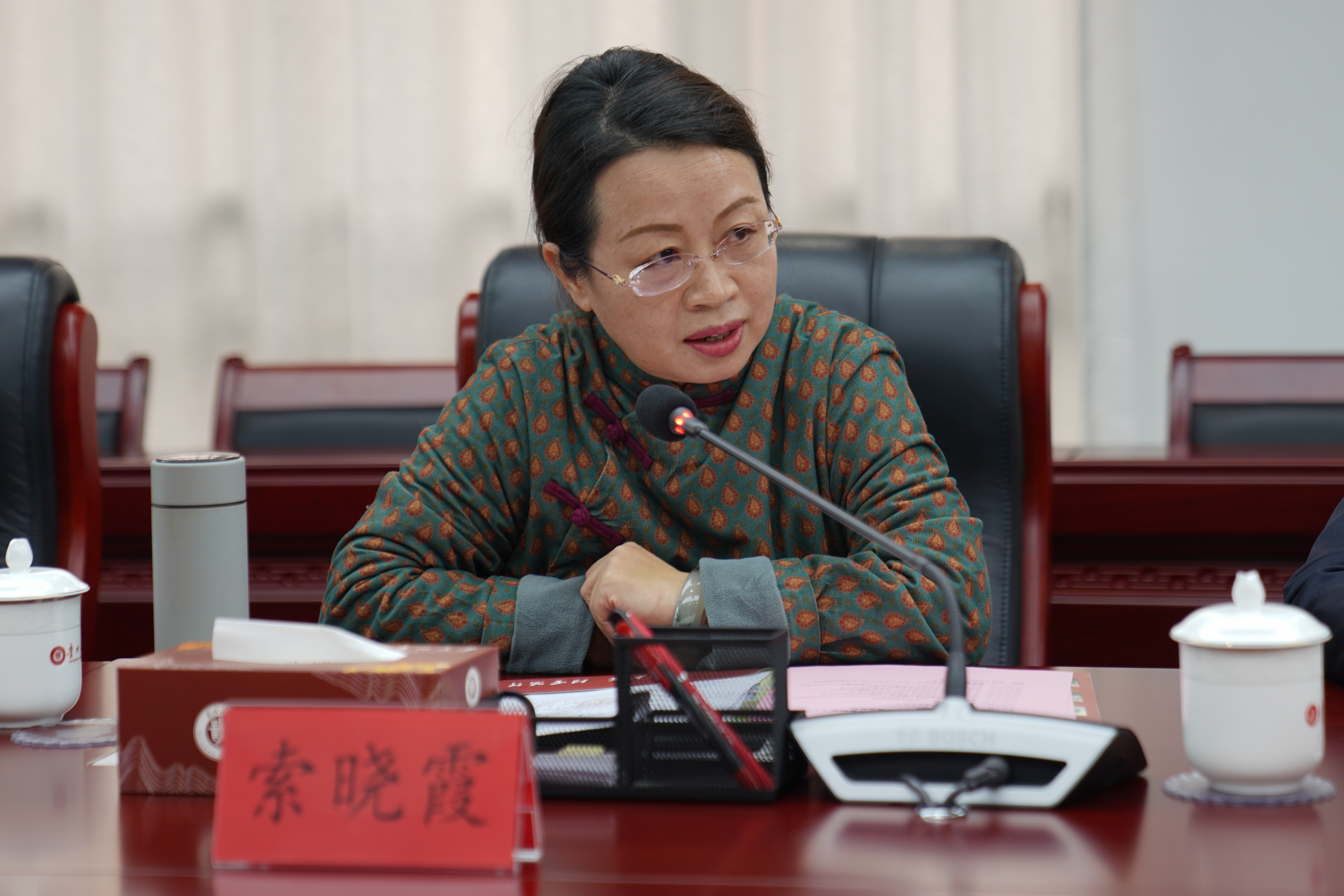 索晓霞在指导发言中分析了中国传统文化与中国共产党理想信念、党性教育的重要性,中国共产党人“心学”表明了对中国优秀传统文化的一种态度、践行。她提出“心学”高端智库应该关注三个关键词:马克思主义、中华优秀传统文化、党的建设,要从国家、省、贵州大学三个层面来思考高端智库的建设。