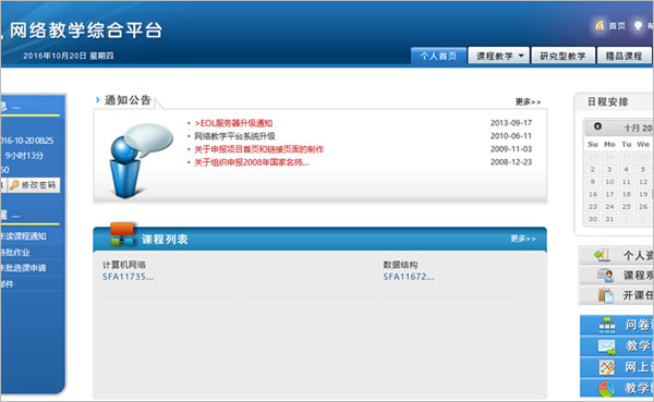 学校建成了功能完整的数字校园系统。数字校园统一门户集成了网络教学平台、教学资源中心、综合教务管理、学生信息管理、图书文献管理和办公自动化等10多个子系统,实现了用户统一身份认证和数据交换,全面支持师生教学、科研、管理以及日常生活。特别是直接面向本科教学提供服务的网络教学平台和教学资源中心已上线运行8年,提供强大的在线备课、互动网络教学功能,支撑着我校146门网络开放课程的日常教学活动。云平台的桌面虚拟化和应用程序虚拟化系统,向多学科师生的教学、科研和实习提供了基于网络的开放式虚拟仿真、模拟计算支撑平台。