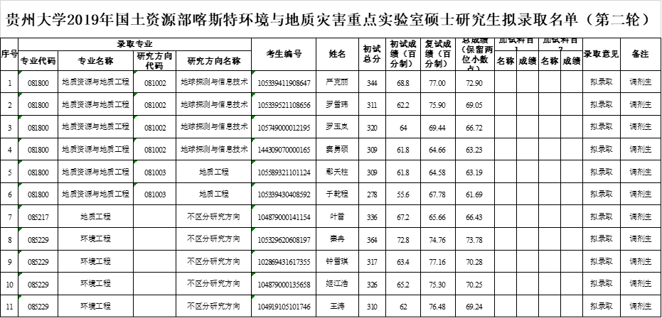 2019年国土资源部喀斯特环境与地质灾害重点实验室硕士研究生拟录取名单(第二轮)