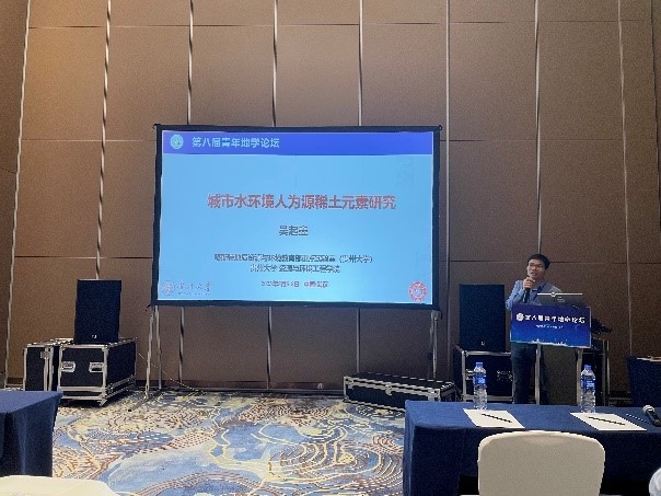 吴起鑫教授与何守阳副教授分别以《城市河流人为源稀土元素特征及其示踪潜力》和《人类活动输入对岩溶地下河系统水化学的影响》为题,在水文地球科学主题论坛做特邀报告。同时,何守阳副教授还以《城市岩溶洞穴的现代监测及研究意义》为题在人类世科学专题论坛做口头报告。袁永强特聘教授以《PGPR在作物富硒生物强化中的应用》为题在“One Health”视角下硒的环境行为专题论坛做口头报告。曾杰特聘教授以《喀斯特地区降雨化学组成特征及其物源解析》为题在喀斯特环境与污染专题论坛做口头报告。