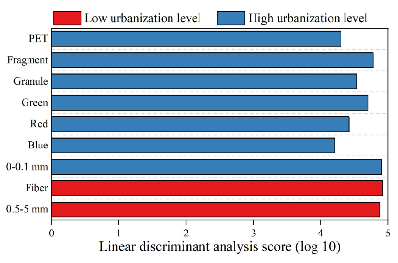 图5基于LEfSe分析的不同城市化阶段沉积物中微塑料群落的识别特征