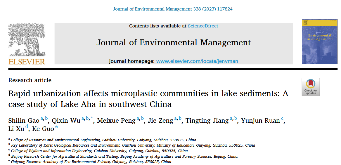 | 吴起鑫教授课题组:快速城市化过程对湖泊沉积物中微塑料群落的影响——以阿哈湖为例 - 贵州大学网络与信息化管理中心
