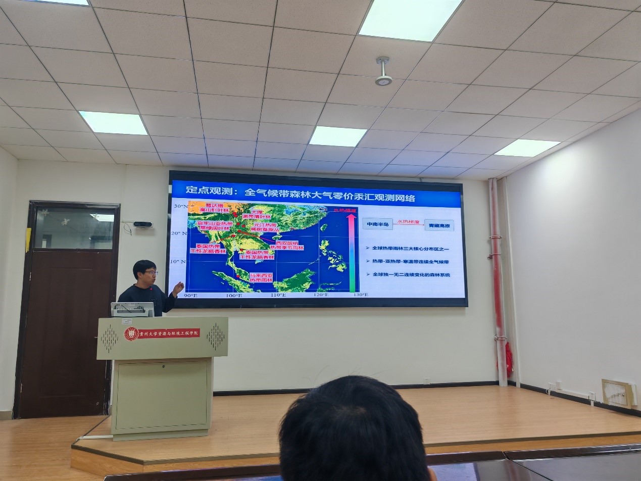 2024年4月24日,中国科学院地球化学研究所王训研究员,受邀来喀斯特地质资源与环境教育部重点实验室&资源与环境工程学院交流,在资环楼521会议室作了题为“植被生态系统是全球大气零价汞重要汇”的学术报告。学术报告由重点实验室副主任、资环学院副院长吴起鑫教授主持,40余位师生参加本次报告会。