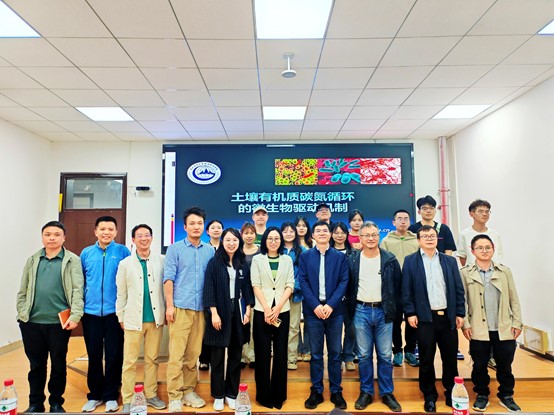 白娥教授长期从事土壤地理学和全球变化研究,采用稳定同位素技术研究土壤生物地球化学循环、生态系统固碳及其影响机制、全球变化及生态系统功能评价,服务我国双碳战略和生态文明建设。本次报告围绕土壤有机质碳氮循环与微生物驱动这一热点话题展开,介绍了该领域的研究背景及最新进展。白娥教授从土壤有机质、土壤微生物、土壤有机质碳氮循环的微生物驱动作用、土壤有机碳稳定性的微生物机制和微生物生物量碳的全球格局等方面,将复杂的科学概念化繁为简,深入浅出的阐述了微生物驱动下的土壤有机质碳氮循环过程及作用机制,加深了与会师生对环境土壤科学的系统认识。
