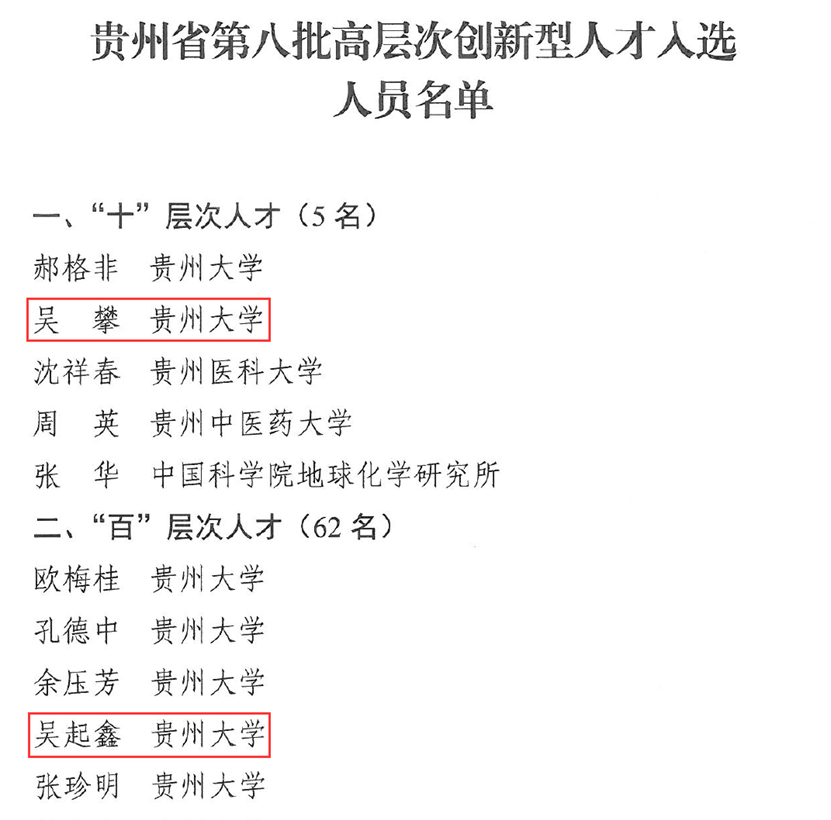 喜报!喀斯特实验室吴攀教授、吴起鑫教授入选贵州省高层次创新型人才
