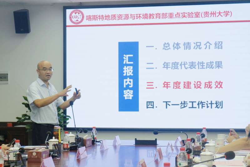 吴攀从实验室总体情况介绍、年度代表性成果、年度建设成效、下一步工作计划四个方面作年度工作汇报。他表示,实验室将以党建引领为抓手,在省委教育工委和学校党委的领导下,聚焦贵州省“富矿精开”和美丽贵州建设,推动重点实验室高质量发展。