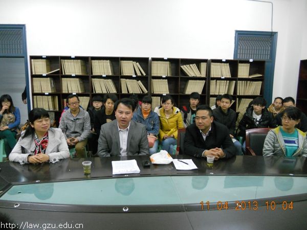 接着,副书记唐飞虎老师代表学院党委、行政再次向关心母校学子成长的胡成金校友表示衷心感谢。唐书记说,贵州大学一直高度重视大学生资助工作,目前已经建立了一系列的资助体系,帮助大批困难学子顺利完成了学业,激励了众多有志青年成人成才,并号召大家向胡成金校友学习,以感恩之心回报母校,为母校争光。接着,刘爱军老师表达了对胡成金同学的赞赏之情,刘老师说:“胡成金同学是我们法学院的毕业生中第一位毕业之后回报母校设立奖学金的同学,值得大家学习。”刘老师同时建议受资助的同学应与胡师兄建立通讯录,感谢他对我们的热情相助。最后,参会同学们纷纷与这位师兄进行了深入的交流。法硕受助学生王少坤同学首先表达对了对师兄的感谢之情,并表示在接下来更加努力学习文化知识,不断提升自身素质,争做一个对社会有用的人,用实际行动来回报关爱。胡化阔同学表示会继续努力,争取更大进步,立志成才,用自己学习到的知识回报社会。本科同学也表达了自己对胡师兄帮助的感激之情,立志认真学习,不辜负胡师兄的帮助和期望,争取在今后也能为学院的发展助力,将这种爱心行动传承下去。