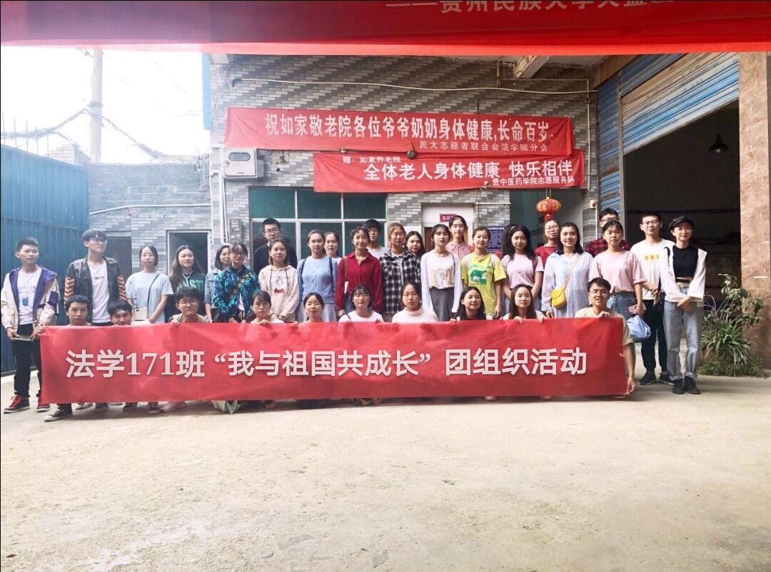 2019年9月28日,法学171团支部带领同学寻找家庭中的老照片,透过照片看祖国的发展,反映现在的幸福生活并配以300字左右的文字说明并制作展板。制作贵阳变化的海报感受祖国成长变化实,为了增强高同学们对祖国的高度认同感,增加课外知识的积累,照片展示唱之外每个小组都会先对照片展示背后的故事做简单介绍,让大家了解照片背后的爱国故事,设计这个活动环节意在希望同学们通过寻找祖国70年来变化的照片加深对祖国的认同感,让同学们在对祖国的历史发展中深切感受到祖国对我们深深的爱意。敬老院献爱心感恩祖国回馈社会。2019年9月30日,众所周知当地生活了一辈子的老人如同移动的历史博物馆见证者祖国一步步的繁荣富强。因此,为了做一名合格的四进四信好少年,与祖国共成长,法学171班在9月30日在课余时间去了花溪的敬老院,感恩祖国回馈社会为老人带来了经典的祖国繁荣变化7预览0年、我与祖国共成长等节目。同学们与老人分享着自己眼中的祖国是多么的伟大,老人也热泪盈眶的为我们讲述着祖国的强大变化。这次感恩祖国回馈社会感受祖国70年变化的敬老院活动深深感染着每一位参加的同学。