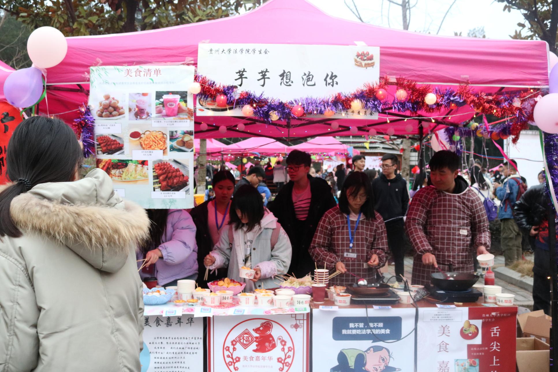在即将辞别2019年,迎来2020年之际,为了丰富我院同学文化生活,锻炼同学们的动手制作能力,激发同学们参与实践的热情,进一步营造欢乐的节日气氛,我院积极参与了12月30日下午在育贤广场举行的贵州大学“美食嘉年华”活动。本次活动于下午四时正式开始,晚上九时结束,前后持续五个小时。