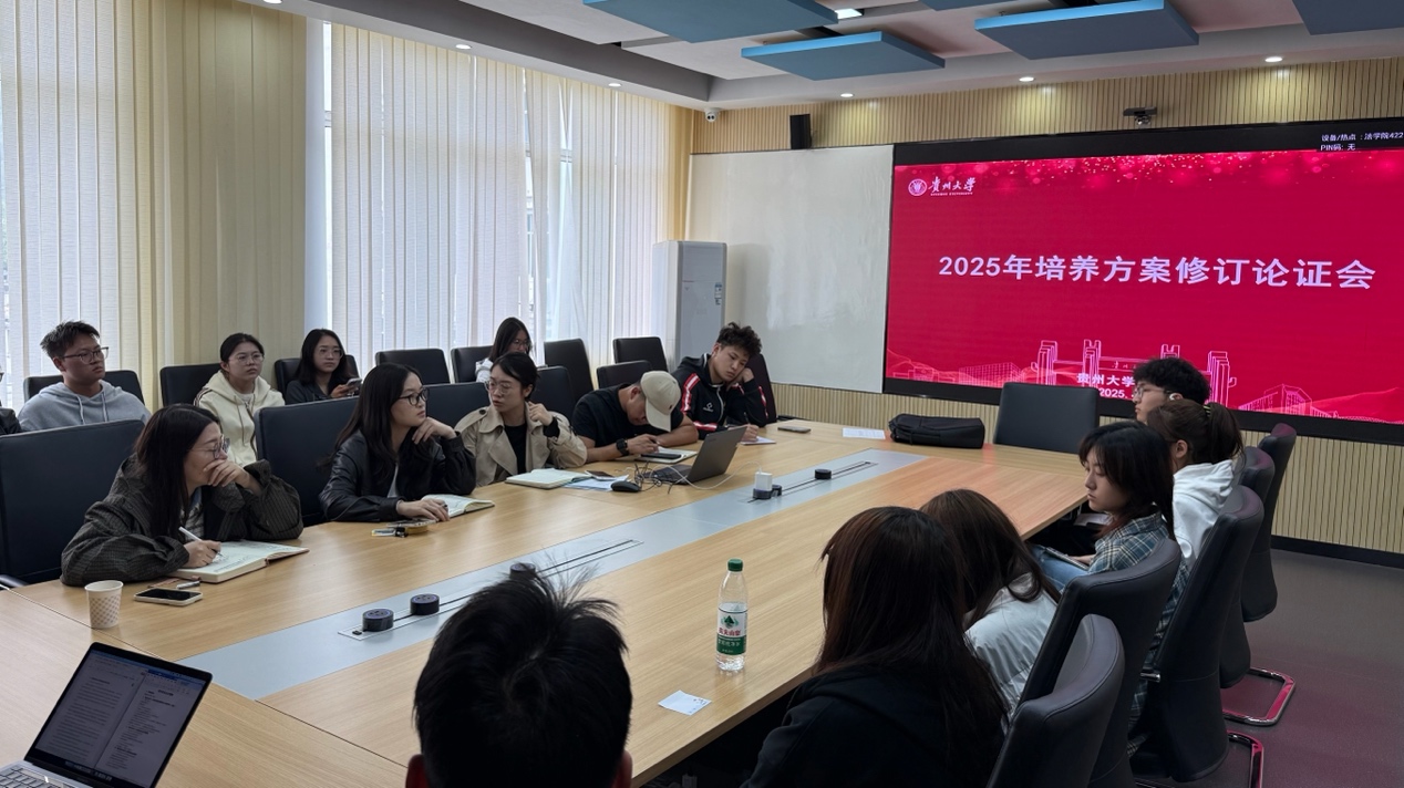 为持续优化法学专业人才培养体系,全面提升教育教学质量,贵州大学法学院于2025年4月23日下午在逸夫楼422会议室召开2025版本科培养方案修订意见征集会。法学院党委副书记李夏、教学科研科科长杨智婷、学生科辅导员金鑫出席会议,各班级学生代表参与会议。会议由李夏副书记主持。