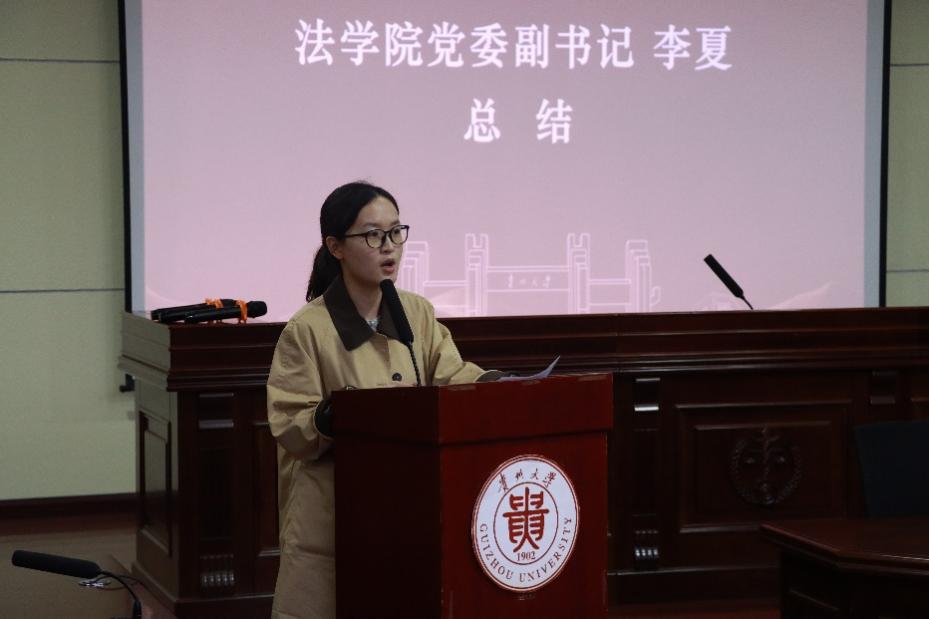 会议伊始,由学院党委副书记李夏宣读法学院四月“运动先锋”表彰名单,并为获得荣誉的同学颁发证书。
