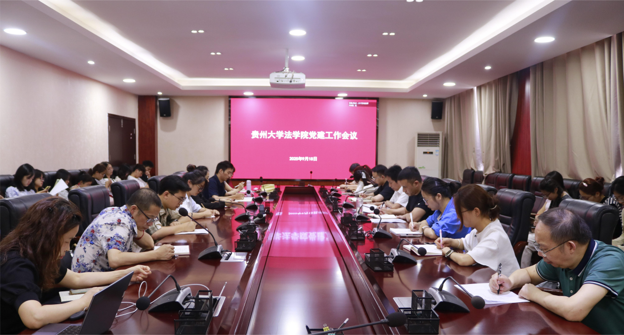 2025年9月18日,贵州大学法学院在逸夫楼217会议室召开学院党建工作会议。法学院党委书记石明昌、正处级组织员张亚军、各党支部书记、支委参加会议。会议由张亚军主持。