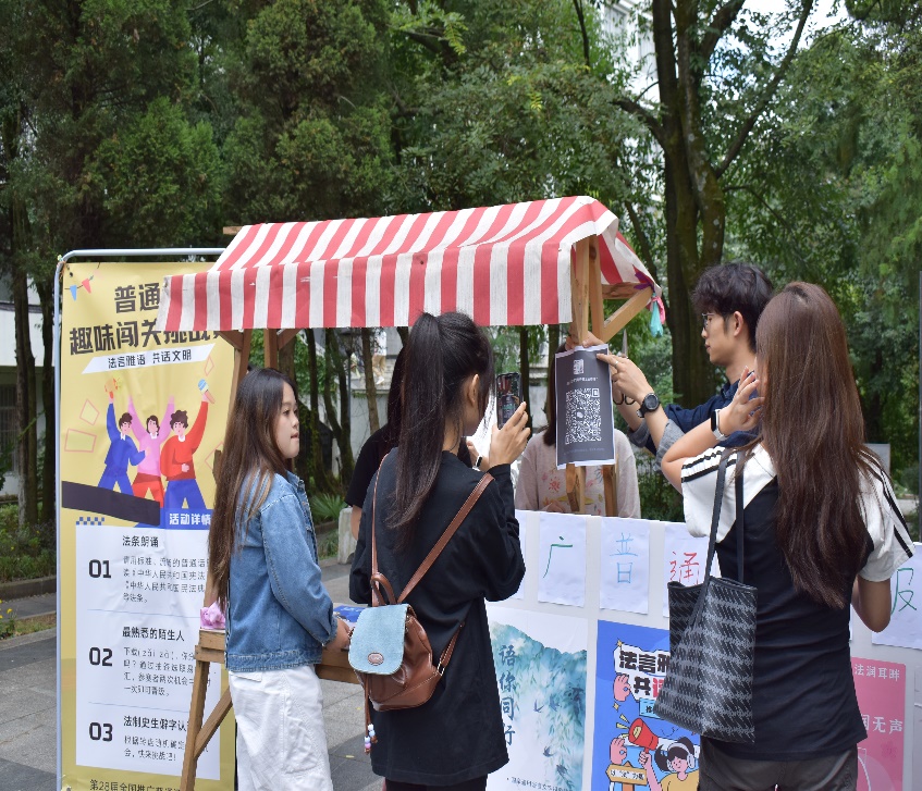 在国家网络安全宣传周来临之际,为了响应国家号召,贵州大学法学院于9月23日下午在逸夫楼前组织了“网络安全百校行”线下活动,活动主题为“网络安全为人民,网络安全靠人民”。本次活动通过线上扫码答题、线下幸运抽奖的形式,让同学们在赢得奖品的同时,又学习到了网络安全知识,此次活动累计吸引了120余名同学参加。