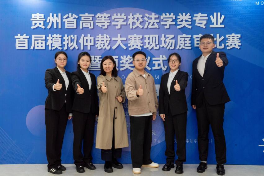 2025年9月27日,由贵州省法学会法学教育研究会、贵州民族大学法学院、贵阳仲裁委员会联合主办的贵州省高等学校法学类专业首届模拟仲裁大赛决赛在贵阳仲裁委员会举行。我院代表队以出色表现荣获团体一等奖(第一名)。