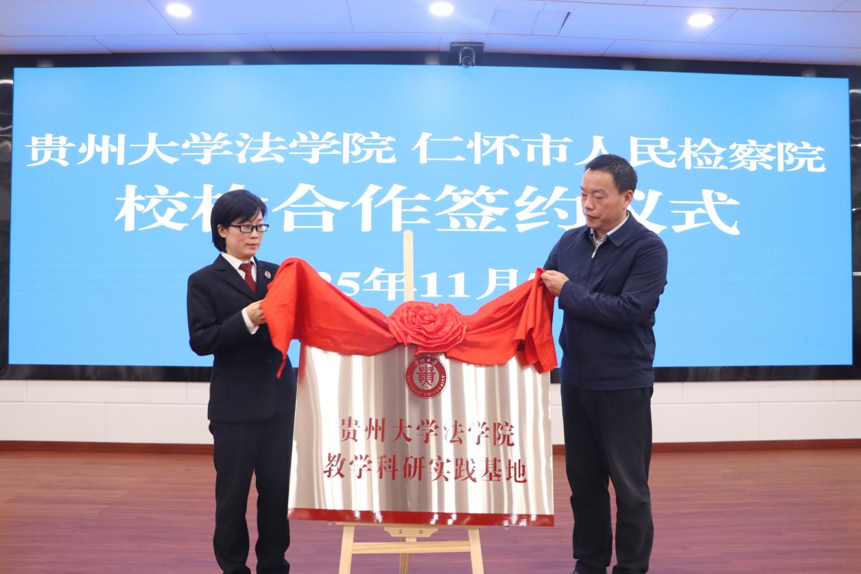 随后,双方代表正式签署检校合作协议,并为“贵州大学法学院教学科研实践基地”揭牌。