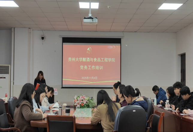 为深入学习贯彻习近平新时代中国特色社会主义思想,持续提升学院党务工作者的政治素养、业务能力和履职水平,2025年11月4日,贵州大学酿酒与食品工程学院党委在崇德楼237会议室组织开展党务工作培训。此次培训由贵州大学党委组织部组织科科长李翠主讲,学院党委书记凌琦、副处级组织员王瑶、党政办负责人、各党支部书记、支部委员等参加。