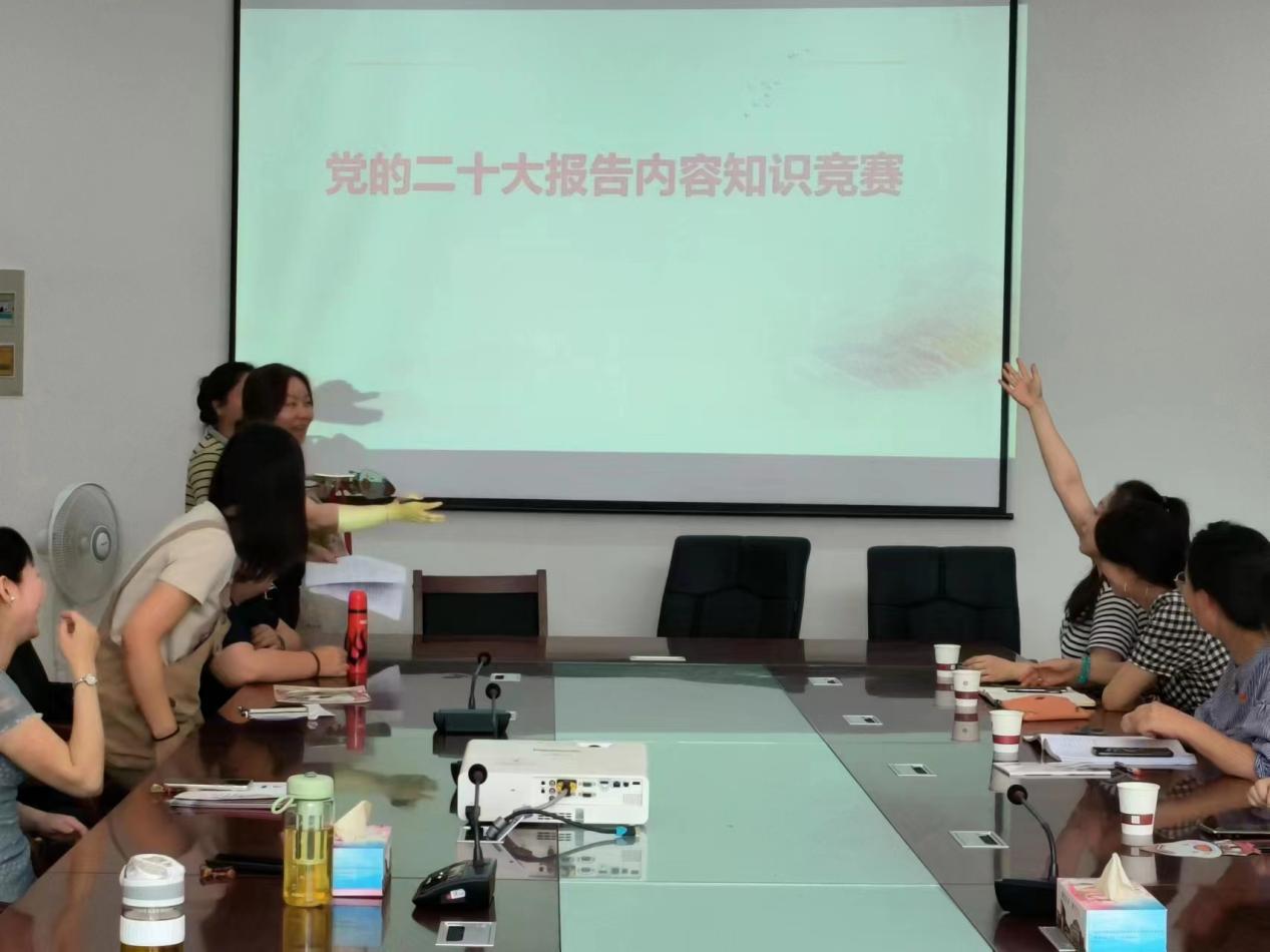 图书馆教工第二党支部书记首先带领大家进行“第一议题”学习:《习近平在中共中央政治局第五次集体学习时强调:加快建设教育强国 为中华民族伟大复兴提供有力支撑》;随后二个支部进行了党的二十大报告内容知识竞赛,每位党员同志通过积极答题重温了党的二十大报告内容和精神。