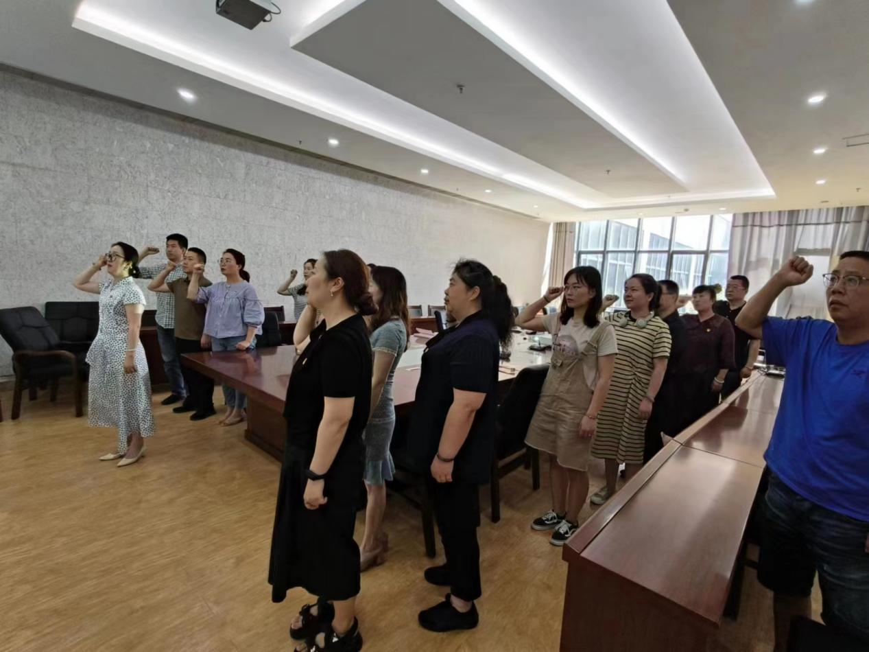 最后,全体党员在国际交流与合作处党支部书记带领下重温入党誓词。参观西校区图书馆一楼大厅的红色画展并合影留念。