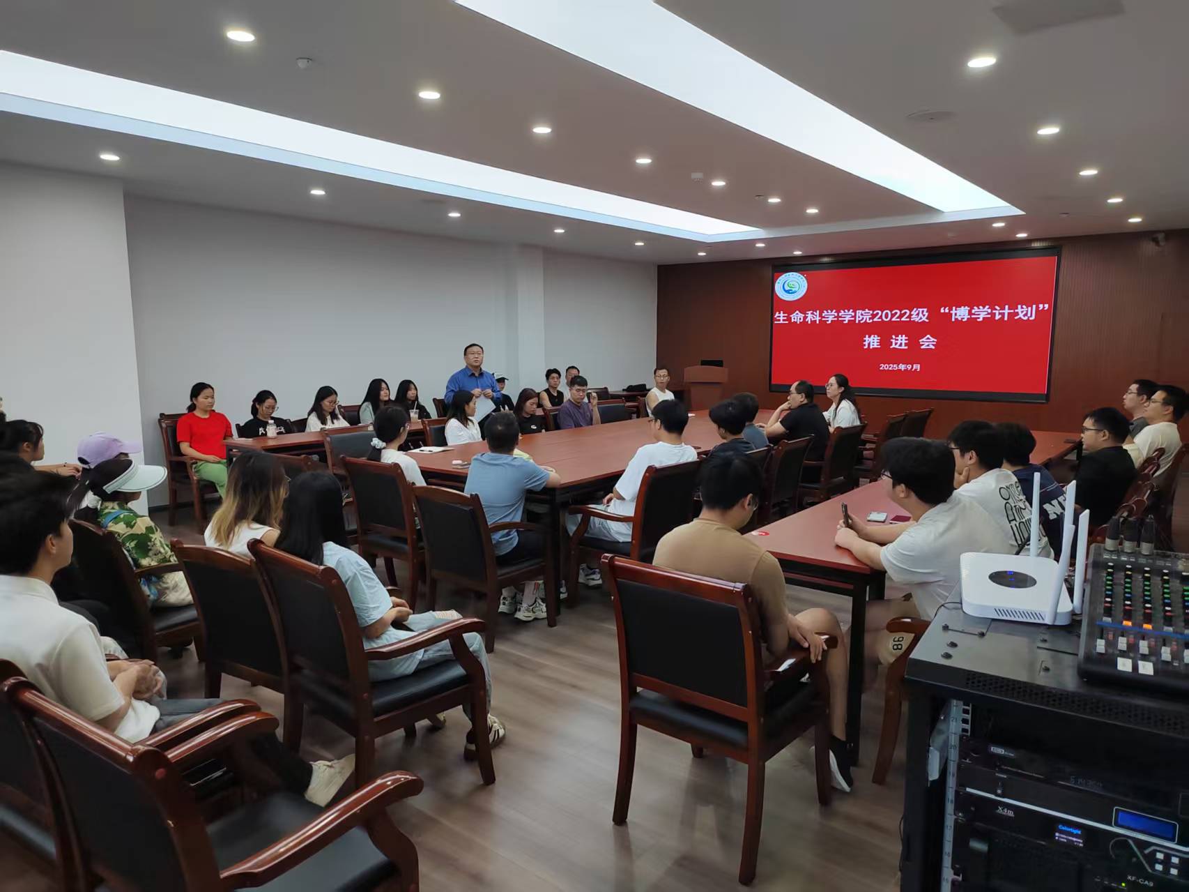 为更加精准指导本科毕业班学生备战考研,2025928日,生命科学学院在崇德楼324会议室分专业召开了2026届本科毕业生“博学计划”推进会,院长吕立堂出席会议,2026届辅导员、班主任和全体本科毕业班学生参加了会议,会议由院党委副书记熊静主持。
