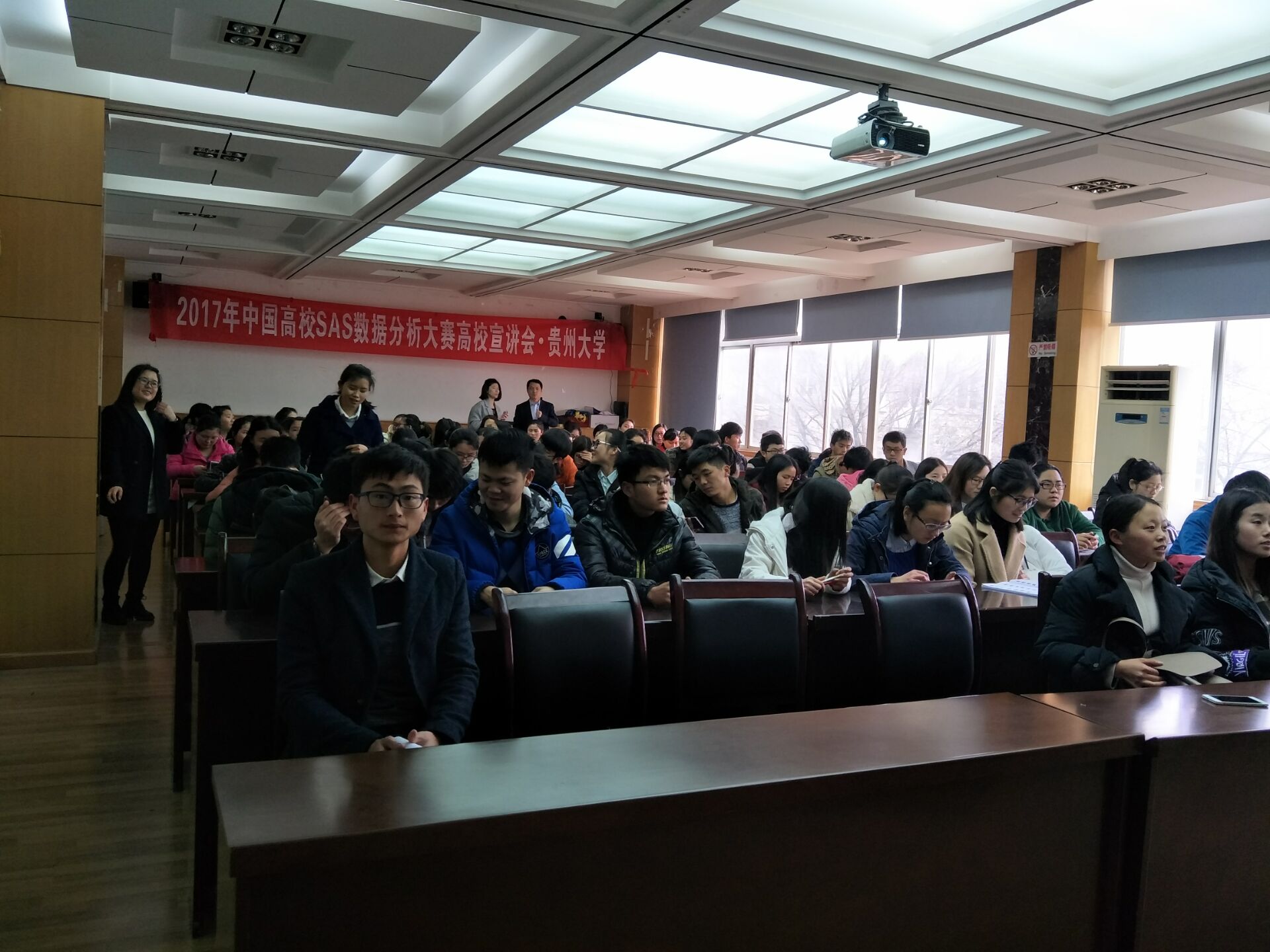 3月21日下午16:30,贵州大学数学与统计学院在博学楼313报告厅开展“2017年中国高校SAS数据分析大赛高校宣讲会”。数学与统计学院2014级的同学悉数参加,同时也有部分SAS爱好者参与到其中。除此之外,广州迪奥信息科技有限公司负责人方芳女士也出席本次宣讲会。