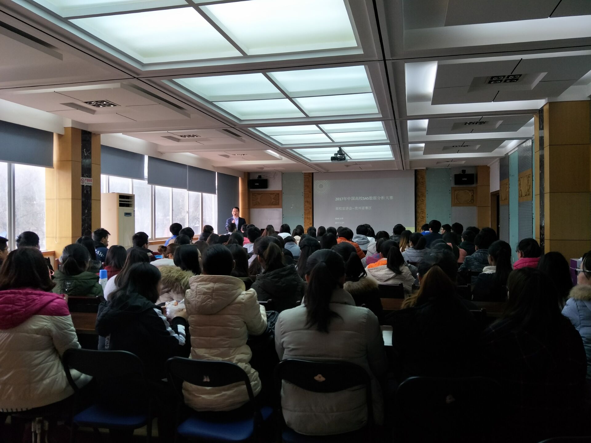 其次是赵丹先生简单地介绍了SAS职业认证、SAS精英会、SAS大学—精英学院,谈及自己所在的SAS行业,他总是娓娓道来,有说不完的话题。在提问环节,赵丹先生以“一个车中哪个座位最为尊贵”引发大家思考,同学们积极说出自己的答案,然后便是赵丹先生解释说“驾驶员斜方向的座位最尊贵”,并说明缘由。最后,“2017年中国高校SAS数据分析大赛高校宣讲会之贵州赛区”在同学们的热烈掌声中圆满结束。 “中国高校SAS数据分析大赛”自2013年举办开始,每年一届,至今已经是第五届,而大赛宗旨在于促进中国高校认识数据分析的重要性,激励更多的学生了解并深入学习数据分析知识、提高实践应用水平、以致学以致用。