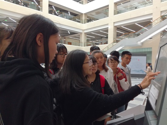 讲座结束,志愿者带领同学们逐一参观了图书馆重要组成部分,志愿者的精心讲解、悉心指导、耐心演示,使同学们在较短时间内掌握了入馆相关知识和技能。