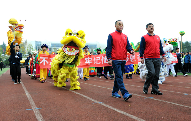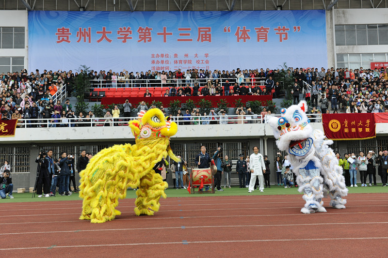 体育节开幕式之 数统学院舞龙舞狮出新意