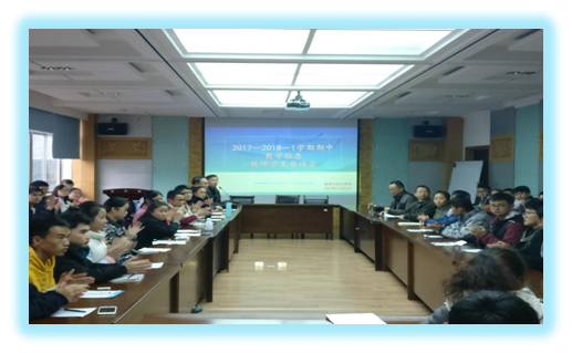 (党建办网讯)11月23日下午,我院在博学楼313召开了2017—2018学年第一学期期中教学检查暨师生座谈会。本次座谈会由胡支军副院长主持,杨辉院长、陈朝东副书记、教学科负责人、班主任和教师代表及学生班委和学生代表参加座谈会。