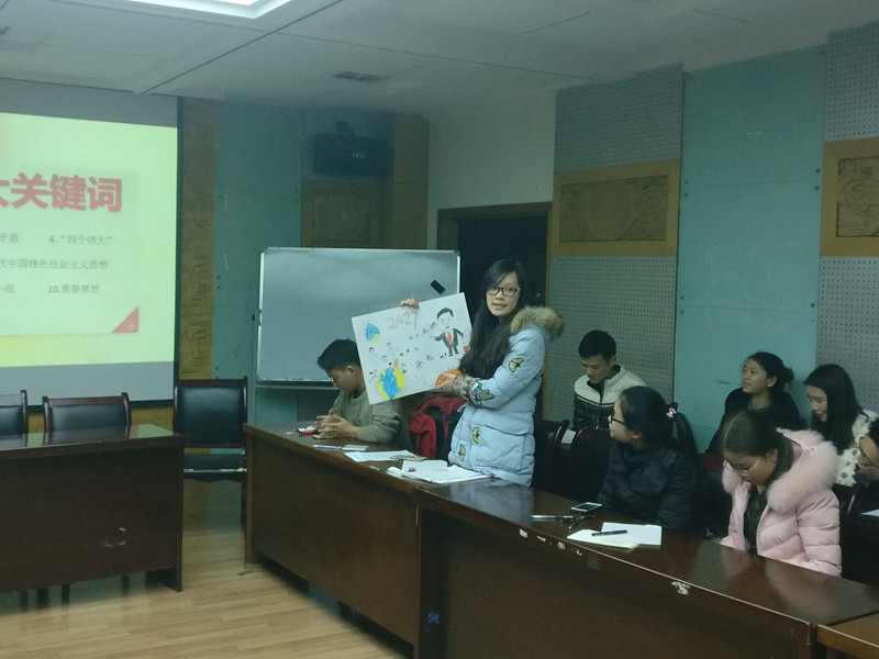学院党建办网讯(记者 梁主权摄影 覃松)12月14日晚,我院本科生党支部、研究生党支部在博学楼313开展了“感恩•向上—争当新时代多彩贵州好青年”学习党的十九大精神主题活动。本次活动共有40多位同学参加,由本科生支部副书记慧芸主持。