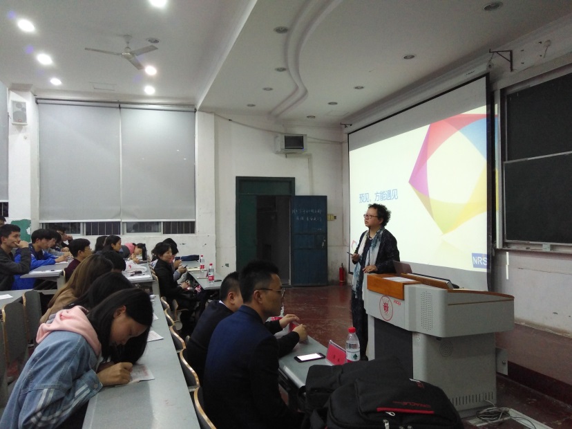 讲座伊始,赵青老师以“预见就是遇见,未来就是现在”为主题,向同学阐述了职业目标的重要性;谭玮老师以“价值观—目标—行动”为导向,引导同学如何从理论到实践向自己设计的目标靠近;吴晓妲老师借企业HR经验指导同学增强职业规划意识;洪启明老师与同学们分享了英语学习的方法和技巧,强调了学习方法的必要性与重要性;孙志翔老师则用诙谐幽默语言告诉同学如何适应时代巨变,借一支蜡烛引喻“想是没用的,只有行动方能实现梦想”。