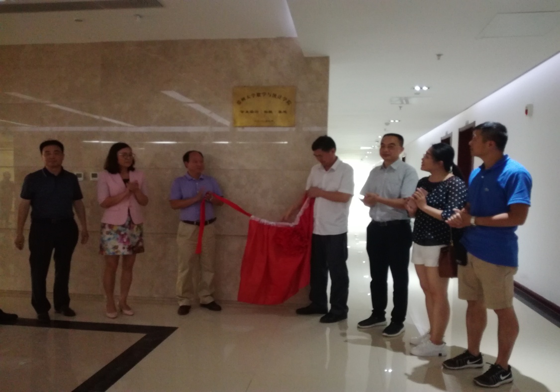 学院网讯(赵黔宁、刘惠蓝报道|摄影 袁权龙 )7月12日上午11:30,“贵州大学数学与统计学院学生实习(实践)基地”揭牌仪式在遵义新浦新区国家统计局遵义调查队隆重举行。院党委书记骆科扬、院长杨辉以及遵义调查队队长陈志永、副队长李瑞珺、副队长冯金友、纪检书记吕绍堂出席揭牌仪式。
