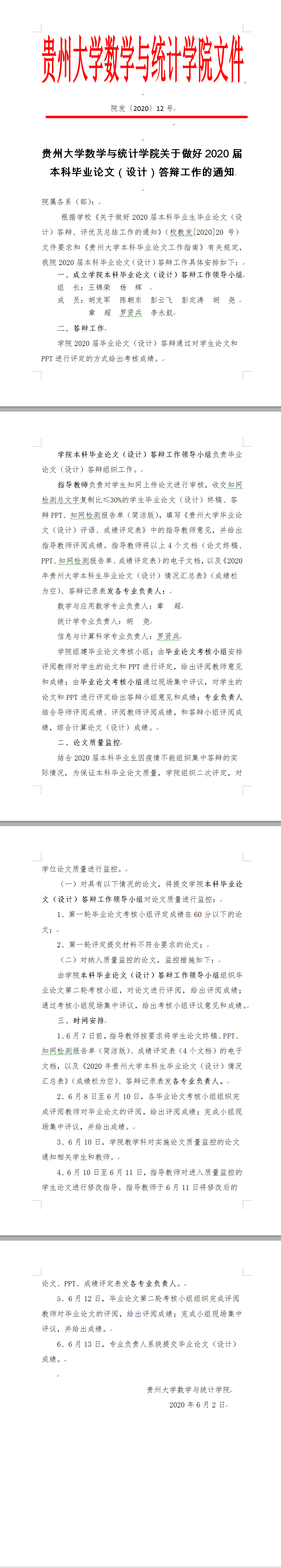 关于做好2020届本科毕业论文(设计)答辩工作的通知