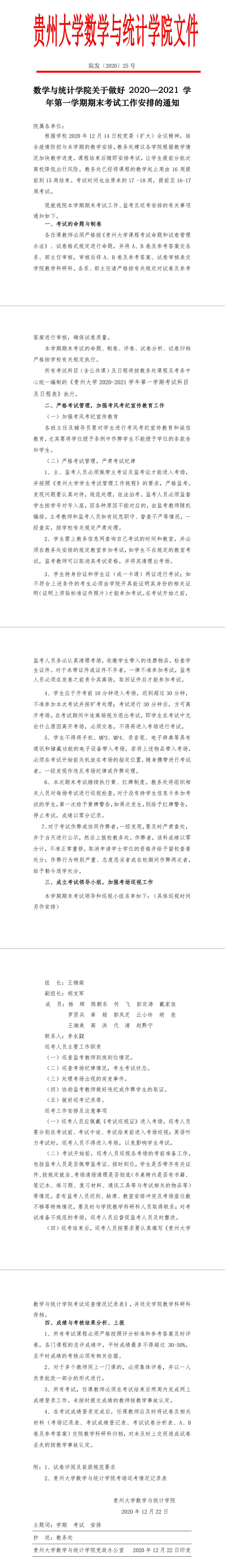 关于做好2020-2021学年第一学期期末考试工作安排的通知