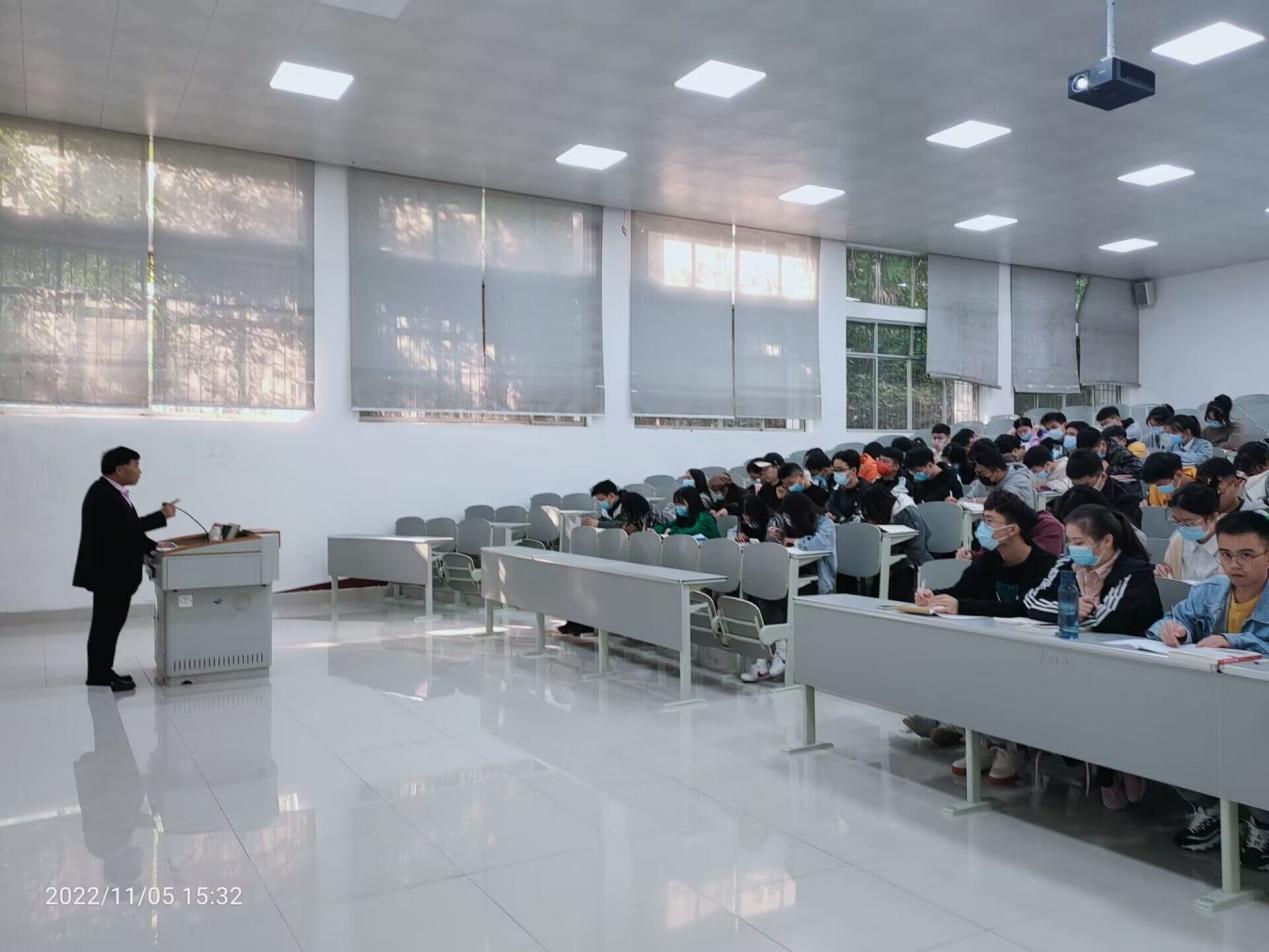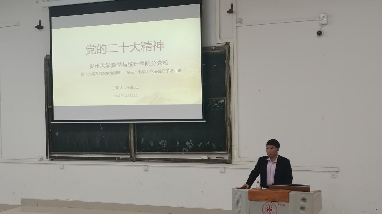 2022年11月5日下午,校党委副书记骆长江在东校区法学楼101DT教室,为我院分党校发展对象和入党积极分子讲授题为“党的二十大精神”的专题党课。