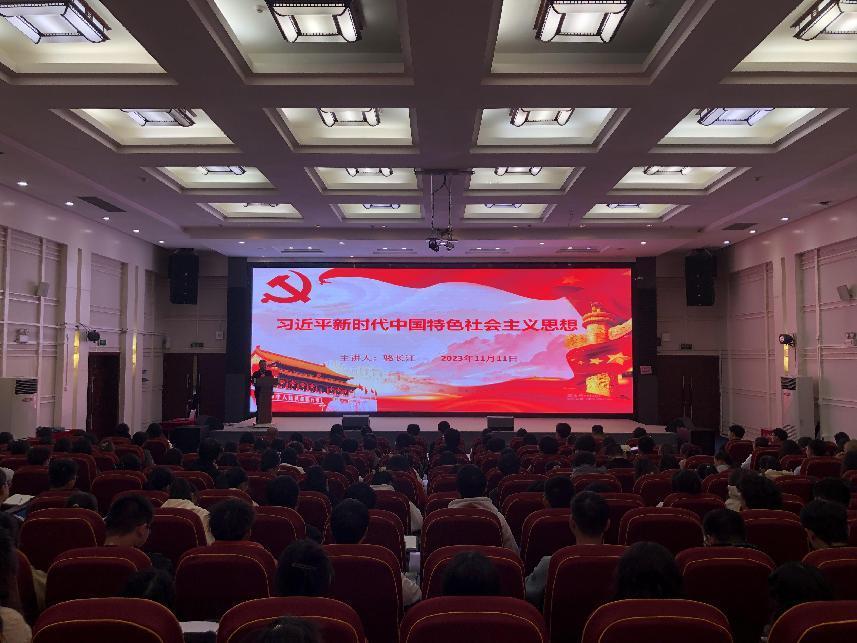 2023年11月11日下午,传媒学院、数学与统计学院第39期入党积极分子培训班专题党课在东校区行政楼报告厅举行,校党委副书记骆长江以《习近平新时代中国特色社会主义思想》为题讲授党课。传媒学院、数学与统计学院党员发展对象及入党积极分子,学院党委班子成员,师生党员代表参加此次培训。