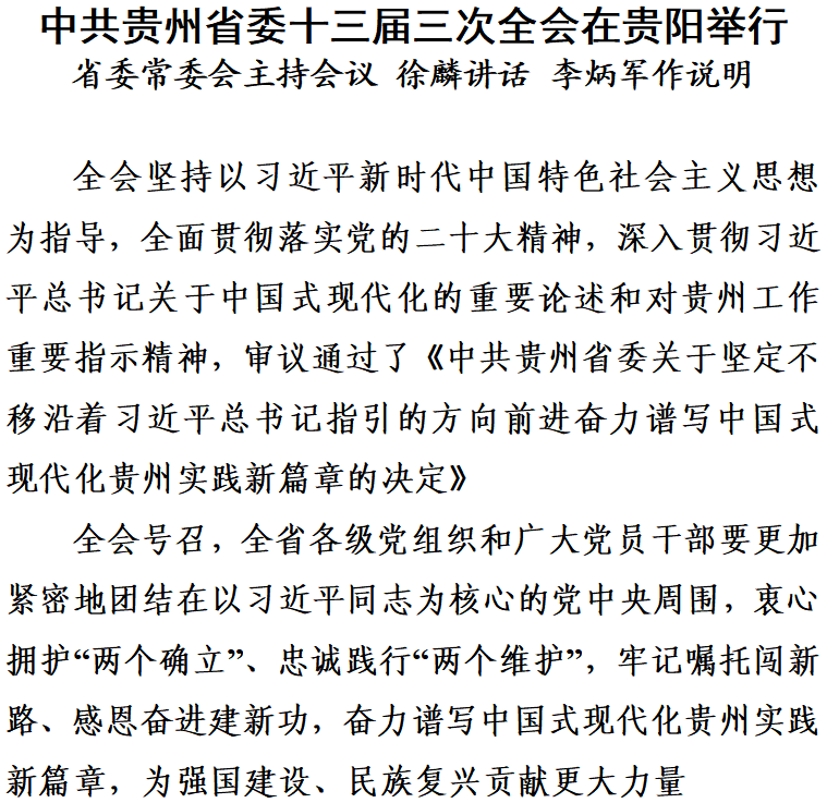 | 中共贵州省委十三届三次全会在贵阳举行 |
