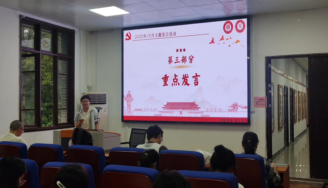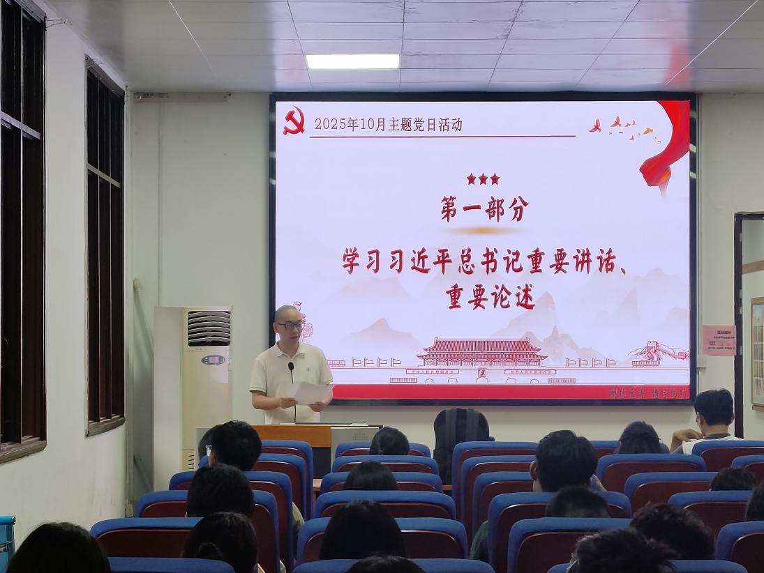 活动伊始,两支部党员在人文楼 308 教室开展第一议题学习,围绕 “教育强国建设” 研讨交流,并专题学习学校第五次党代会精神。