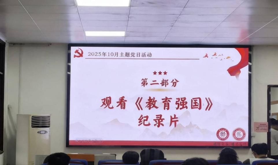 随后,全体党员共同观看由中央广播电视总台和教育部联合摄制的专题片《教育强国》。片中鲜活的教育故事、显著的发展成就,让党员们深刻体会到教育在国家富强、民族复兴中的关键作用,进一步坚定了投身教育强国建设的信念。