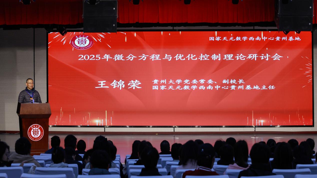 开幕式由贵州大学副校长王锦荣主持。四川大学张旭教授应邀致辞,他系统阐述了微分方程与优化控制理论在航天工程、工业自动化、金融管理及水文预报等关键领域的核心应用价值,强调其作为基础数学与工程实践的重要纽带,在智能控制、系统优化等国家战略需求中的支撑作用,并结合行业发展趋势,展望了学科与人工智能、大数据交叉融合的未来方向,引发与会者广泛共鸣。