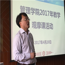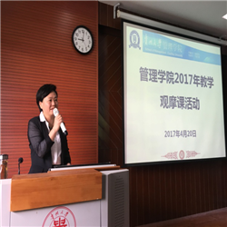 全面提高教育教学质量,4月20日全天,在管理学院407教室成功举办了2017年教学观摩课活动。此次活动邀请到了原贵州大学发展规划处处长林岚涛教授、原贵州大学教务处副处长高登慧教授,管理学院退休老教师李景勃教授,管理学院教学指导委员会委员李晓红教授、高波教授、陈颖副教授作为评委,学院全体党政领导出席本次活动。教学观摩课活动由分管教学副院长宋山梅主持。