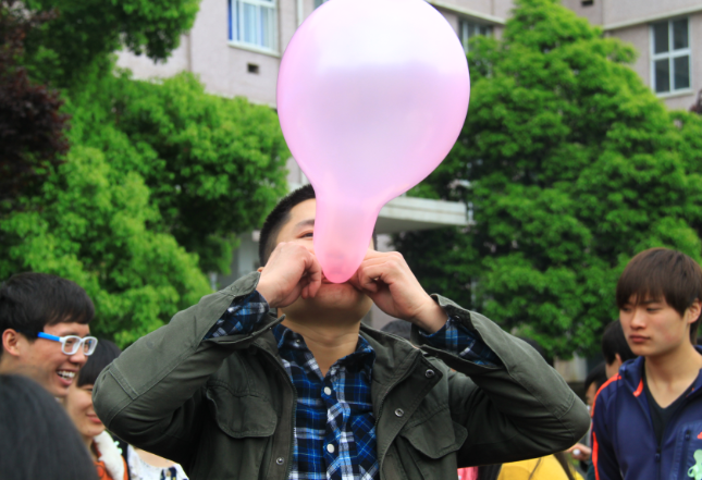 脚下是默默随风摇曳的青草,和煦的阳光慵懒的躺在部员们的身上,本来就沉浸在活动欢乐中的部员显得更加喜悦了。此时,北区老操场赫然已变成了一片欢乐的海洋。此次活动随着主持人的讲话正式拉开序幕,主持人一开始先耐心的向大家交代了此次活动的大概流程,接着便直接进入了活动中最令大家期待的游戏环节。游戏的顺序依次是开火车、无敌风火轮、合力吹气球、K”7“比赛,当然这其中还包括了跟经济学院的友谊拔河。每一个游戏大家都非常积极的参与,部员们在游戏中表现得十分活跃,整个老操场感觉就快被大家的呐喊声震裂了。其中场面最为激烈的非无敌风火轮这个游戏环节莫属。这个游戏的规则是8人一组利用报纸和胶带制作一个可以容纳全体团队成员的封闭式大圆环,将圆环立起来全队成员站到圆环上边走边滚动大圆环,在规定的时间内到达目的地。到达目的地时按所需时间长短来记录成绩,所需时间短的分数就高。在制作大圆环的过程中有的队伍像热锅上的蚂蚁忙得不可开交,而有的队则是表现得有条不紊,大家都在利用自己的智慧力图将大圆环做得结实耐用。大约15分钟后 ,各队的道具都已经制作完毕。比赛就要开始正式的角逐了,得胜的关键不单是考验道具的优劣也需要团队的配合,所以比赛不到最后一秒谁也没法预知哪支队伍会是最后的翘楚。比赛过程中各种搞笑状况层出不穷,特别是有的风火轮甚至在半路就被队员们的脚分解了,有的“娘子军团”居然走出了自己的轮圈。约30分钟过后,各队纷纷拖走了队伍残缺不堪的“战轮”,从部员们的脸上不难看出大家都还意犹未尽。