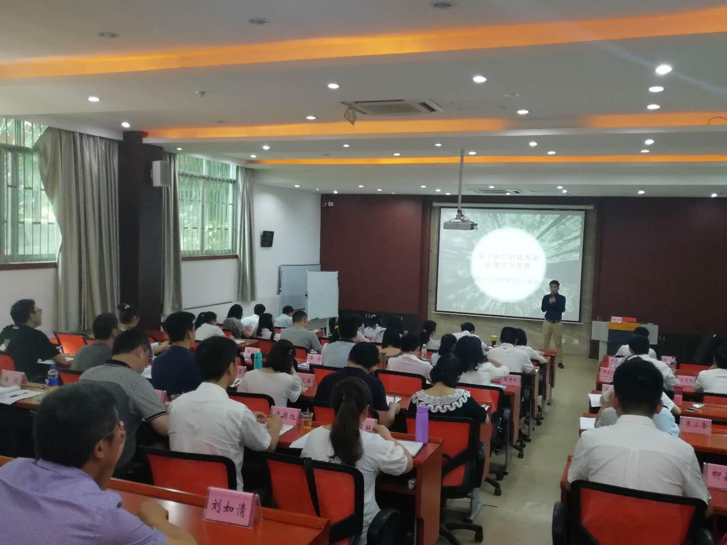 在简单而隆重的开班典礼结束后,由贵州大学管理学院副教授,MBA教育中心专任教师,并长期承担本科与硕士研究生的相关课程的谢磊副教授进行了为期两天《基于执行的高效团队建设与管理》。