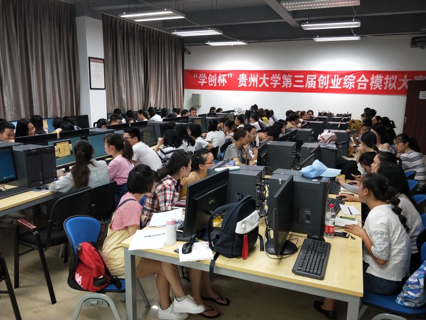 为推进高等学校创新创业教育,鼓励学生自主创业,提高学生的创业项目运行能力,激发学生创业的积极性,提高初创企业的管理能力。由贵州大学教务处主办,贵州大学管理学院承办的“学创杯”贵州大学第三届创业综合模拟大赛,于2018717日在慎思楼管理学院实验中心顺利举行。