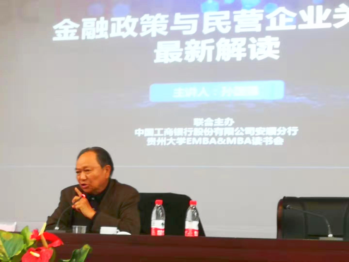 2019年2月23日下午,中国工商银行安顺分行和贵州大学菁英(EMBA&MBA)读书会特地邀请孙国强导师(原贵州省副省长)在工行安顺分行,作了主题为“金融政策与民营企业关系最新解读”的演讲。孙国强导师主要从商品、货币与资本、资本与资金、虚拟经济与实体经济、金融和银行的、投资和融资、银行的借贷和企业的发展、金融政策与民营企业发展以及新投融资体系及未来八个方面对主题进行了精彩的讲解。安顺市委市政府的领导、安顺市辖区银行、金融机构主要负责人、中国工商银行安顺分行读书会(中高层干部)、安顺本地知名民营企业家、贵州大学EMBA&MBA读书会会员等近120名人员盛况出席本次活动。