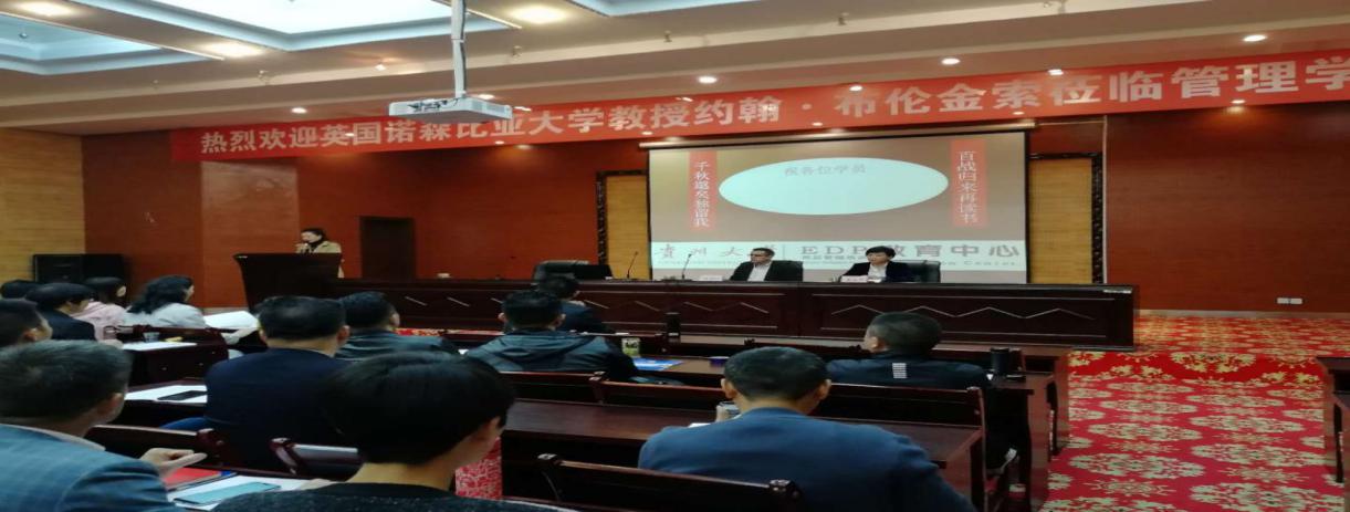 为增强贵州大学管理学院EDP教育中心国际化开放程度,聘请英国诺森比亚大学John Blenkinsopp教授于2019年4月13——14日两天在贵州大学北校区双馨园宾馆五楼会议室为EDP中国企业家(CEO)高级研修六、七、八期班学员们进行授课,学院副院长宋山梅教授出席了课程开班典礼。